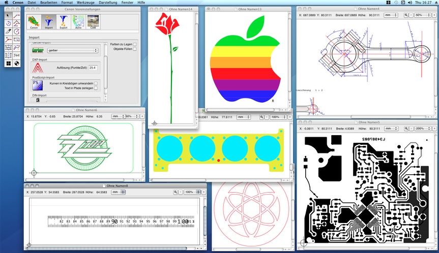 Darüberhinaus bietet Cenon den Import von Text-Listen, Raster-Bildern (JPG, PNG, GIF, TIFF, ...) sowie icut.