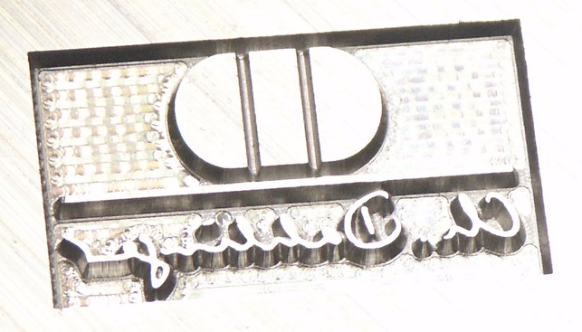 | | Gravur mit Ausspitzen Das Ausspitzen wurde speziell zur Herstellung feinster Gravuren entwickelt, zum Beispiel zur Herstellung von Stempeln, Prägewerkzeugen, oder auch Münzen. Ausspitzen ermöglicht eine sehr exakte Abbildung der Oberfläche durch das korrekte Anheben des Werkzeuges in Ecken und schmalen Bereichen. |