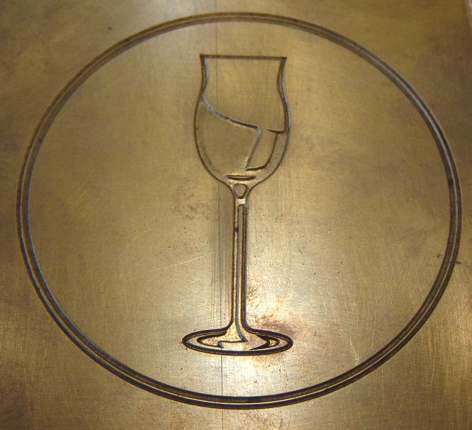 | | Ausspitzen mit konischem Werkzeug Ausgespitzt wird immer mit einem konischen Werkzeug. In allen Ecken wird das Werkzeug schräg in die Engstelle hinein angehoben. Auf diese Weise werden selbst feinste Aspekte der Grafik in die Gravur übertragen. |